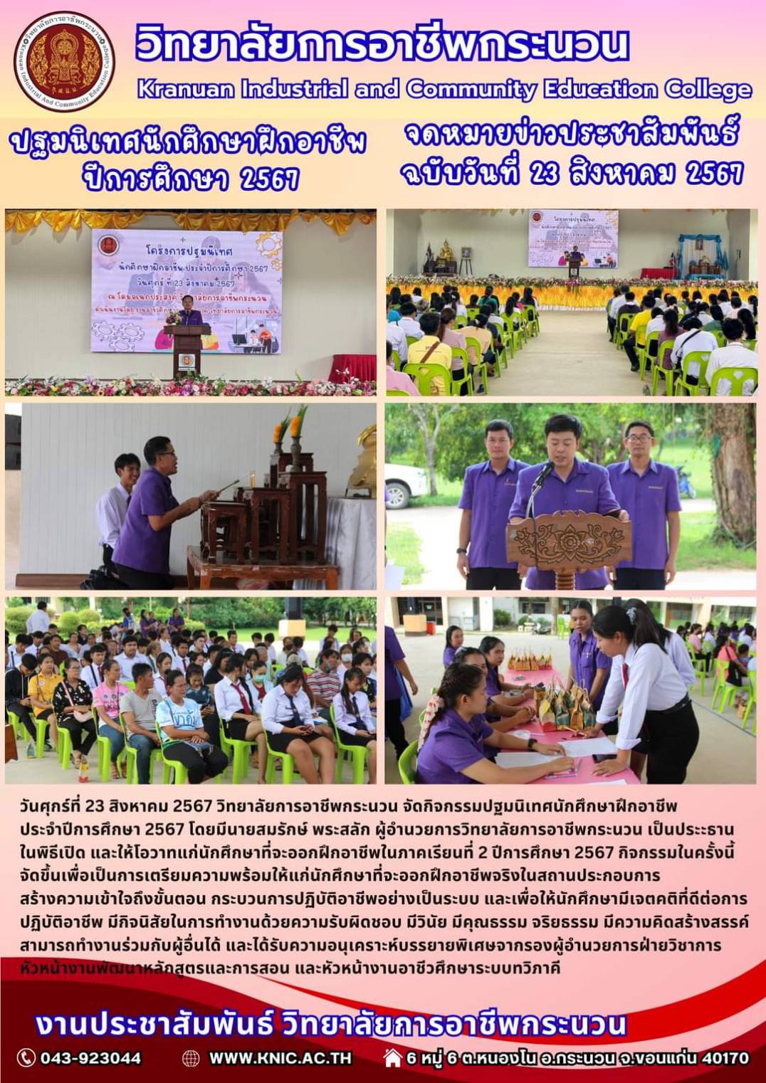 กิจกรรมปฐมนิเทศนักศึกษาฝึกอาชีพ ปีการศึกษา 2567
