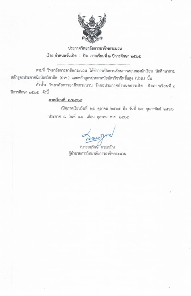 ประกาศกำหนดการเปิด-ปิดภาคเรียนที่ 1 ปีการศึกษา 2565