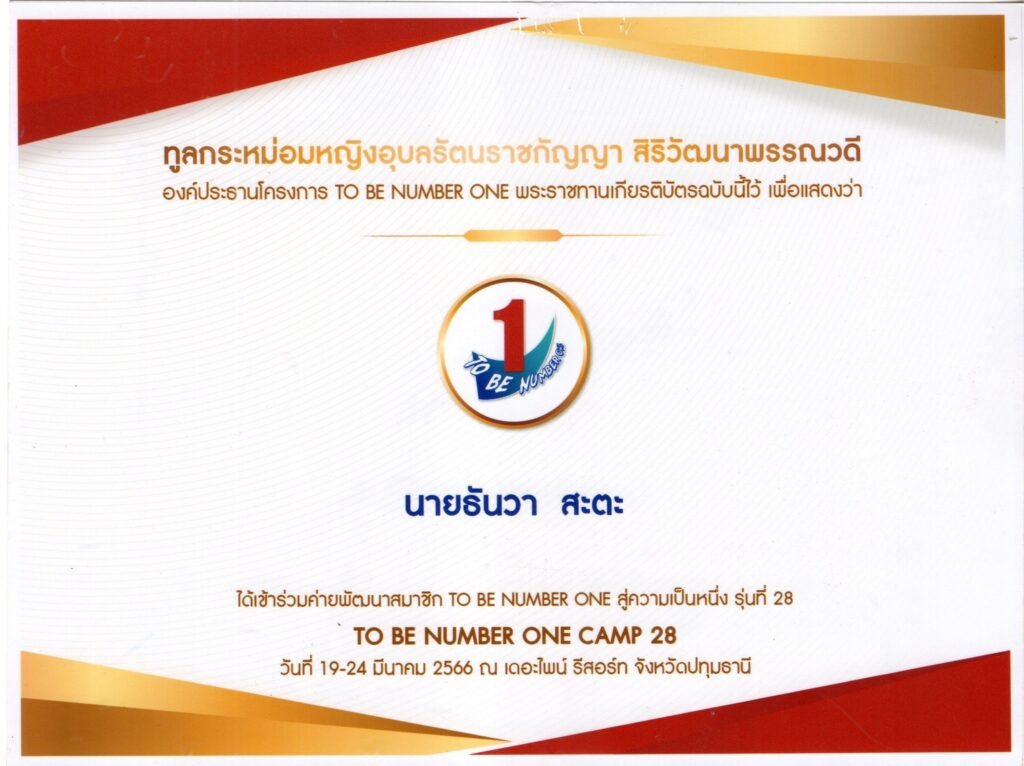 วิทยาลัยการอาชีพกระนวน ขอแสดงความยินดีกับ นายธันวา สะตะ นักเรียนสาขาวิชาไฟฟ้ากำลัง ที่ได้เข้าร่วมโครงการค่ายพัฒนาสมาชิกแกนนำ TO BE NUMBER ONE CAMP สู่ความเป็นหนึ่ง รุ่นที่ 28 ระหว่างวันที่ 19-24 มีนาคม 2566
