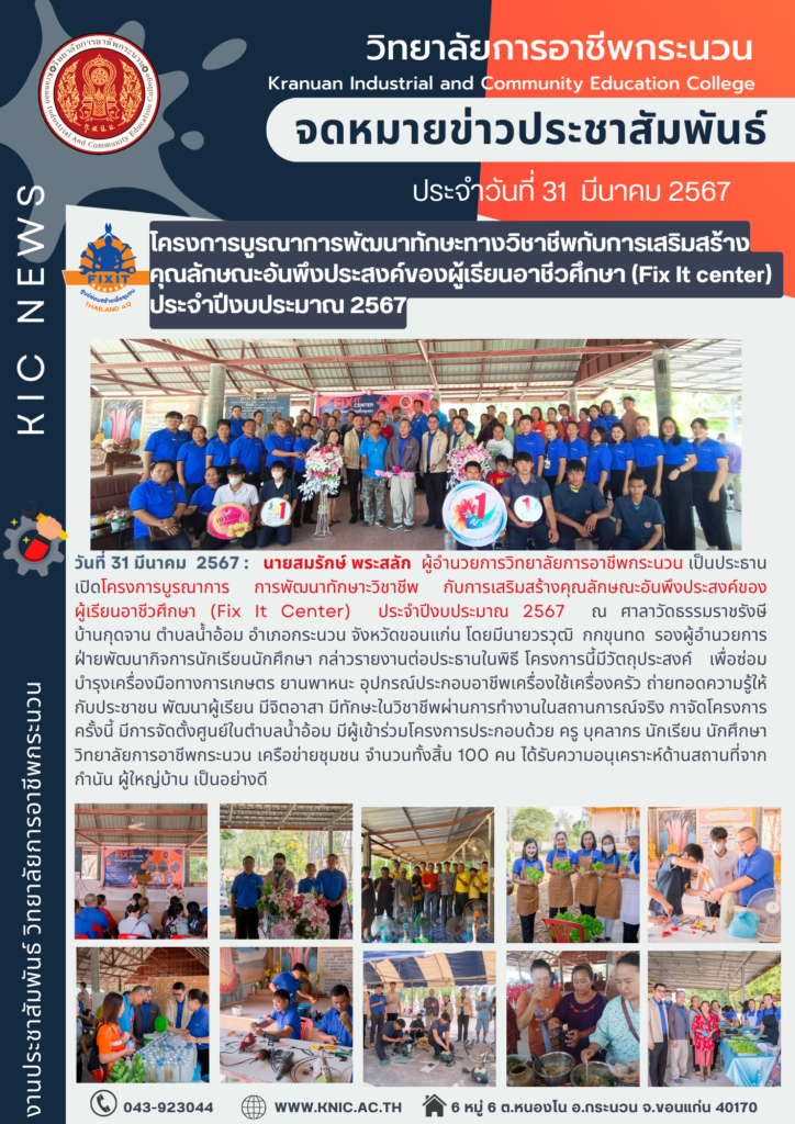โครงการบูรณาการพัฒนาทักษะทางวิชาชีพกับการสร้างคุณลักษณะอันพึงประสงค์ของผู้เรียนอาชีวศึกษา