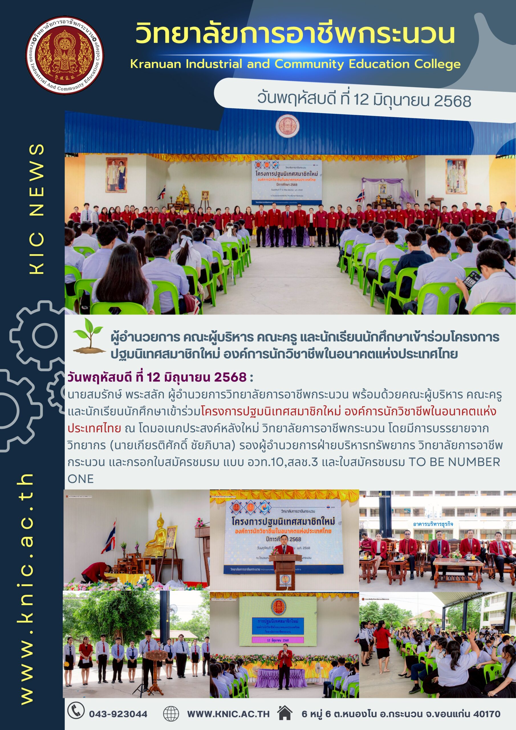 นายสมรักษ์ พระสลัก ผู้อำนวยการวิทยาลัยการอาชีพกระนวน พร้อมด้วยคณะผู้บริหาร คณะครูและนักเรียนนักศึกษาเข้าร่วมโครงการปฐมนิเทศสมาชิกใหม่ องค์การนักวิชาชีพในอนาคตแห่งประเทศไทย ณ โดมอเนกประสงค์หลังใหม่ วิทยาลัยการอาชีพกระนวน